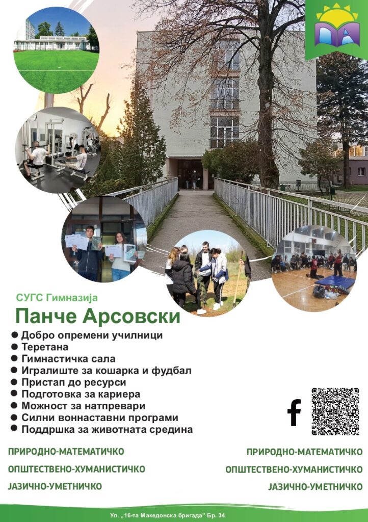 Врз основа на Конкурсот за запишување на ученици во јавните средни училишта за учебната 2026/2027 година во Република Северна Македонија,објавен од Министерството за образование и наука,Училишната комисија за Средно училиште на Град Скопје Гимназија “Панче Арсовски” за запишување на ученици во учебната 2026/2027 година,на ден 08.04.2026 година го објави следниот: